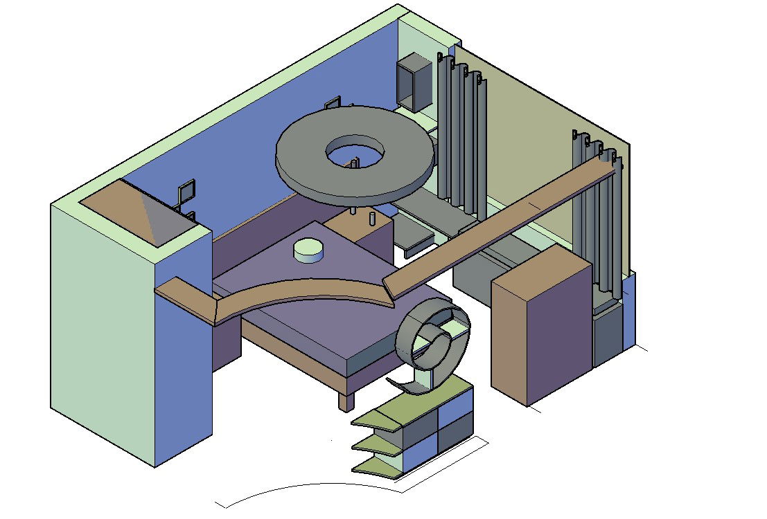 3d bedroom details in a front view, right side elevation , left side elevation furniture details , double bed details , wardrobe details , window details.