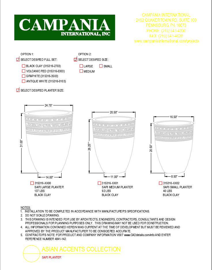Download DWG Sari traditional planters CAD blocks design with large, medium, and small planter sizes. CAD drawing reference for landscape and architectural use.