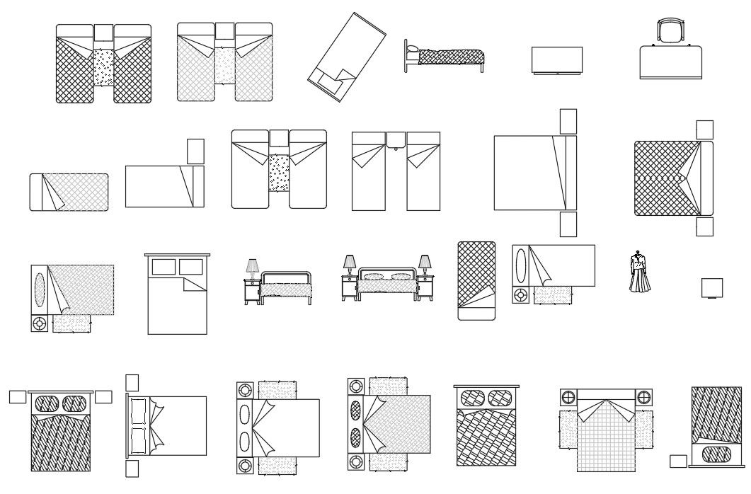 Wooden bed details including a different type of bed like double bed , single bed, table including a chair details ,