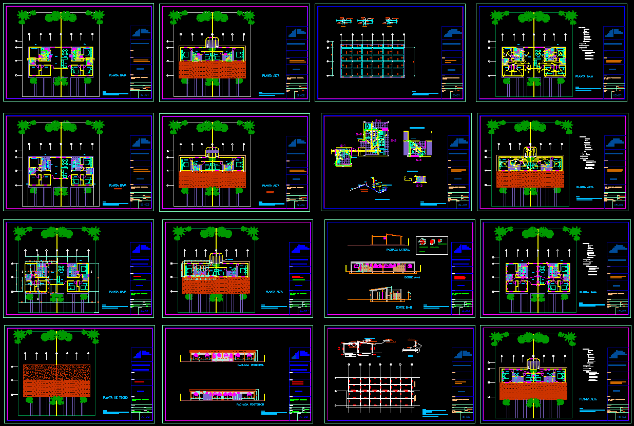This twin bungalow AutoCAD DWG file provides complete architectural drawings ideal for residential planning and design execution. The file contains detailed floor plans, sectional views, and layout designs that display the structural and spatial arrangement of both bungalows. Each level includes living spaces, bedrooms, kitchens, staircases, and attached utilities, ensuring functional and aesthetic planning. The included centerline plan and footing layout provide accurate reference points for construction marking and dimensioning.