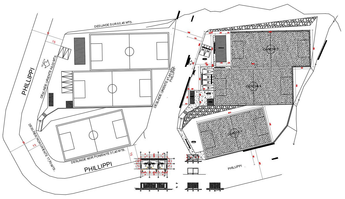 The architecture layout plan Sports Center with section plan and elevation design in autocad file.