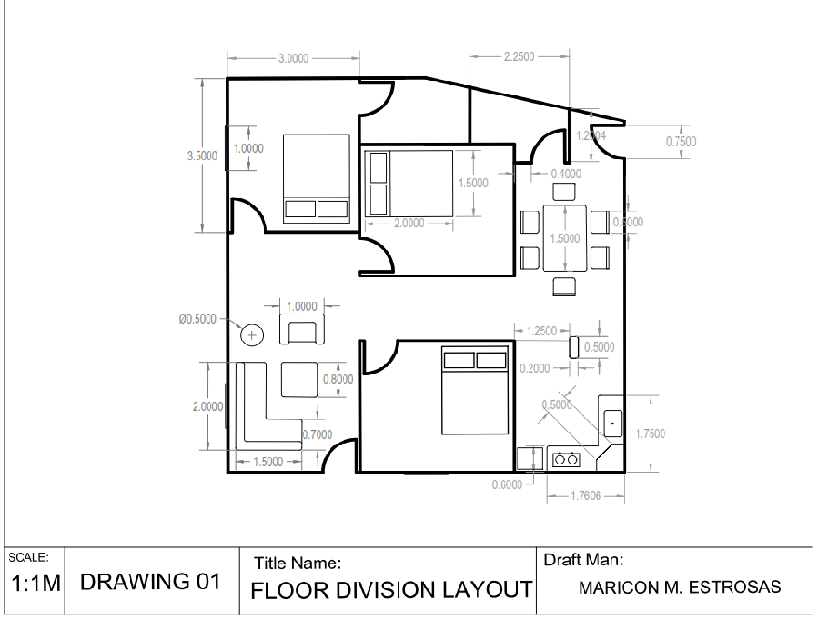 This is a simple floor plan layout of 1 story house building with 81 square meter area and have 3 bed rooms, 1 main room with Comfort room and 2 ordinary room, all of this have a dimension of 3.5 x 3.0 meters.