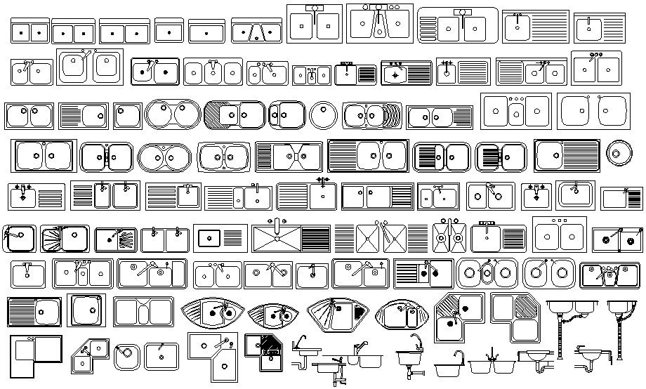 Kitchen sink design 2d drawings dwg file that shows top elevation of sink details with tap faucets design details.
