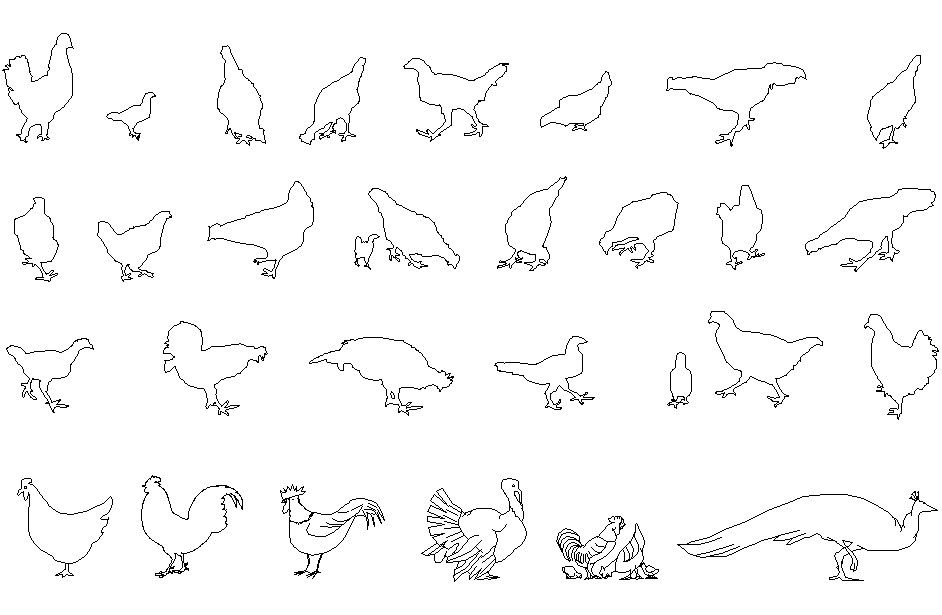 Bird blocks design dwg autocad file that shows line drawings details of birds blocks.