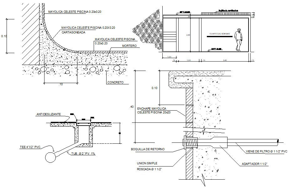 Swimming pool components details dwg file