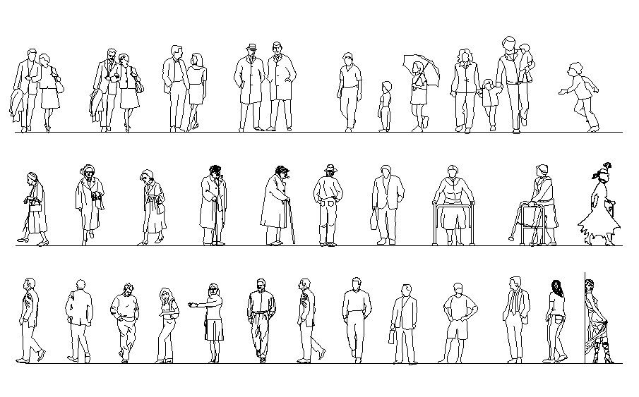 People design blocks dwg file that shows line drawings of men and women cad block.