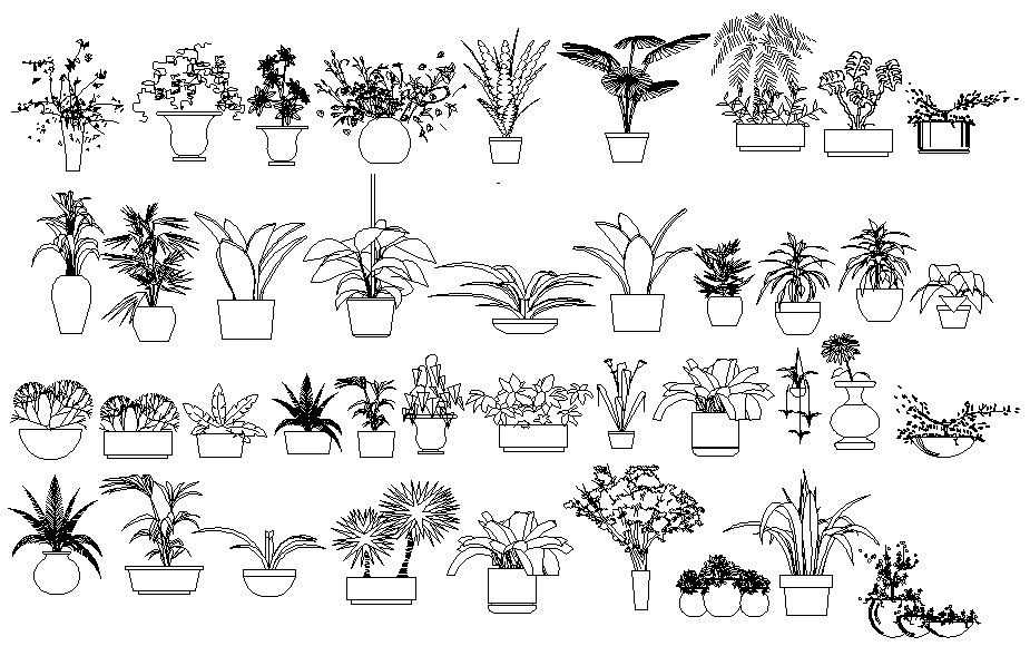 Landscaping plants blocks 2d drawing that shows various landscaping plants units line drawing details