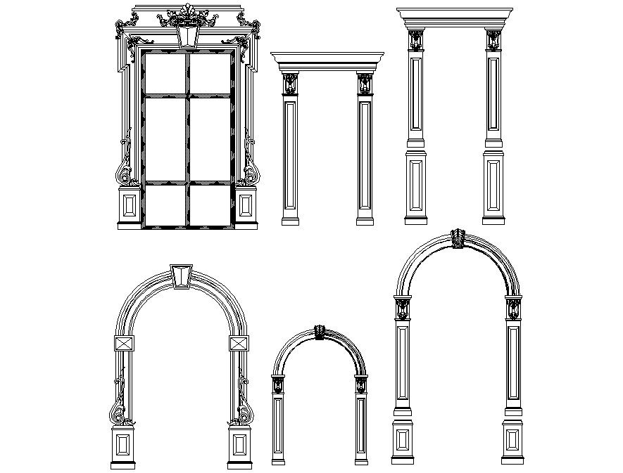 Door frame design drawing that shows door elevation drawings details with column design details also included in drawing.