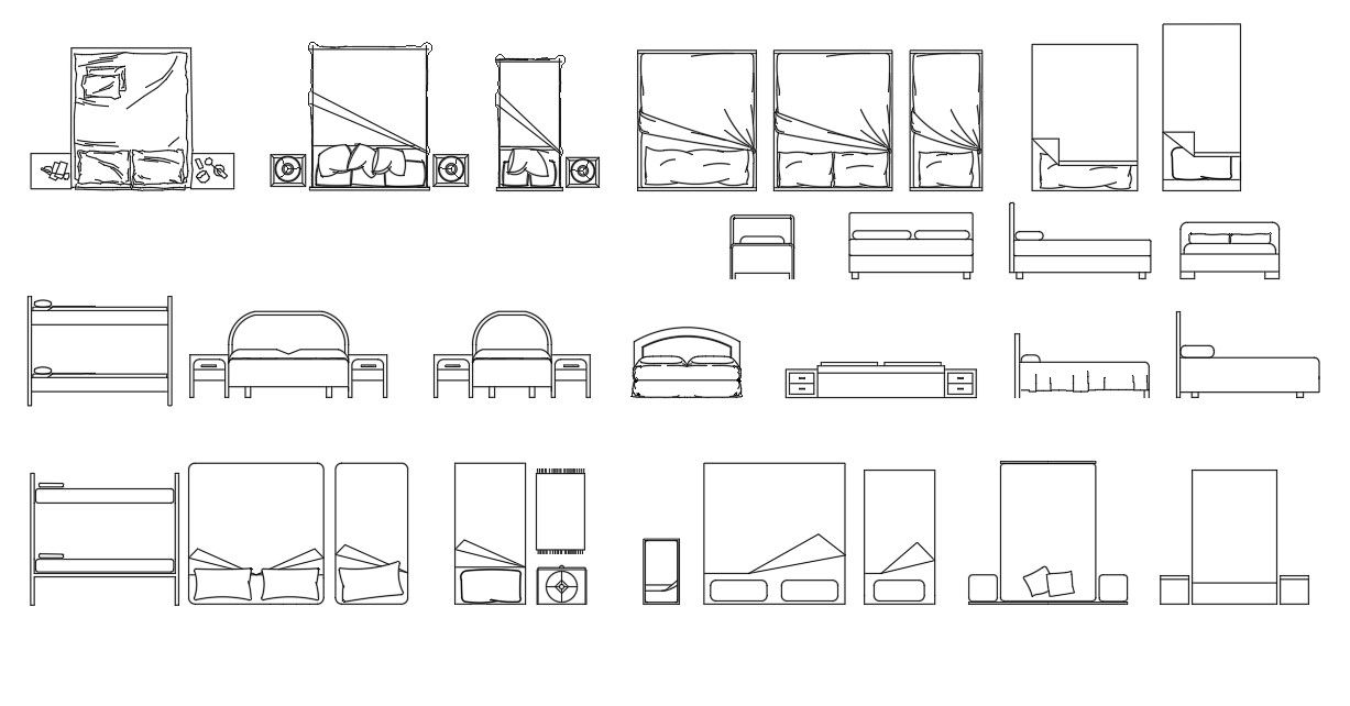 Top view and side elevation of single bed and double bed in autocad file which is use bed room and children bedroom.Detail of Double Bed Block .