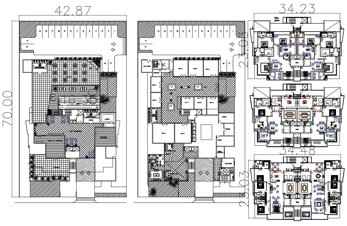 House design cad plan drawing that shows work floor plan drawings details of building along with room dimension details and room details includes details of drawings room, bedroom, kitchen and dining area, sanitary toilet and bathroom details. Staircase details with floor level details also included in drawings.