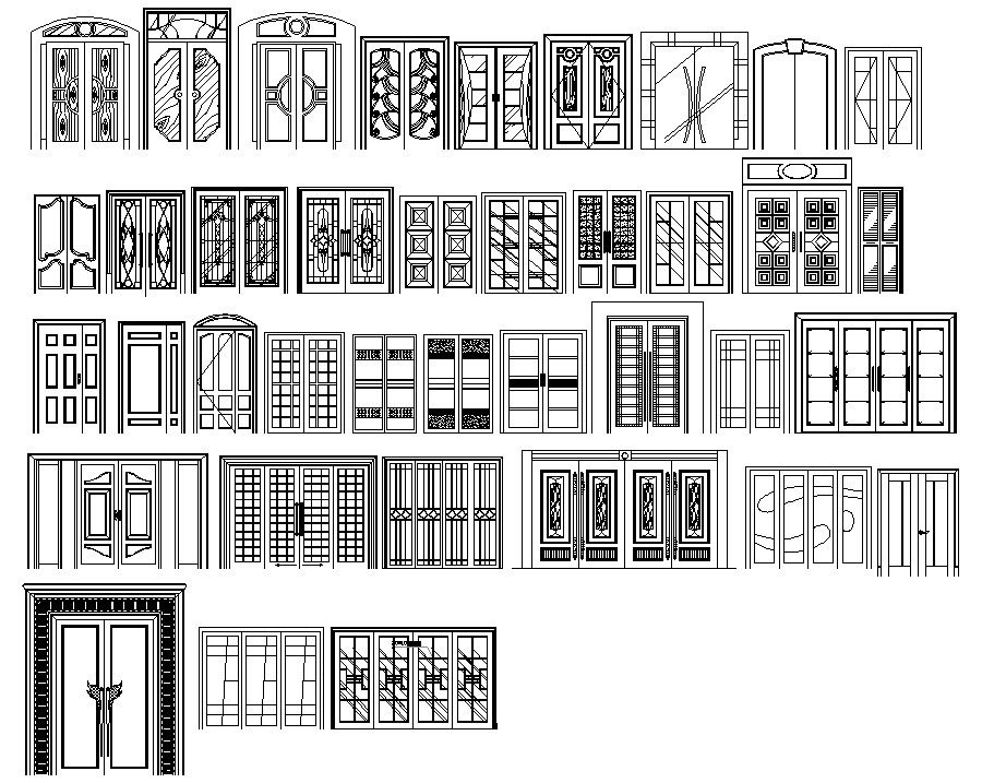 Drawing 2d elevation of door window blocks dwg file that shows door design elevation with door handle details.