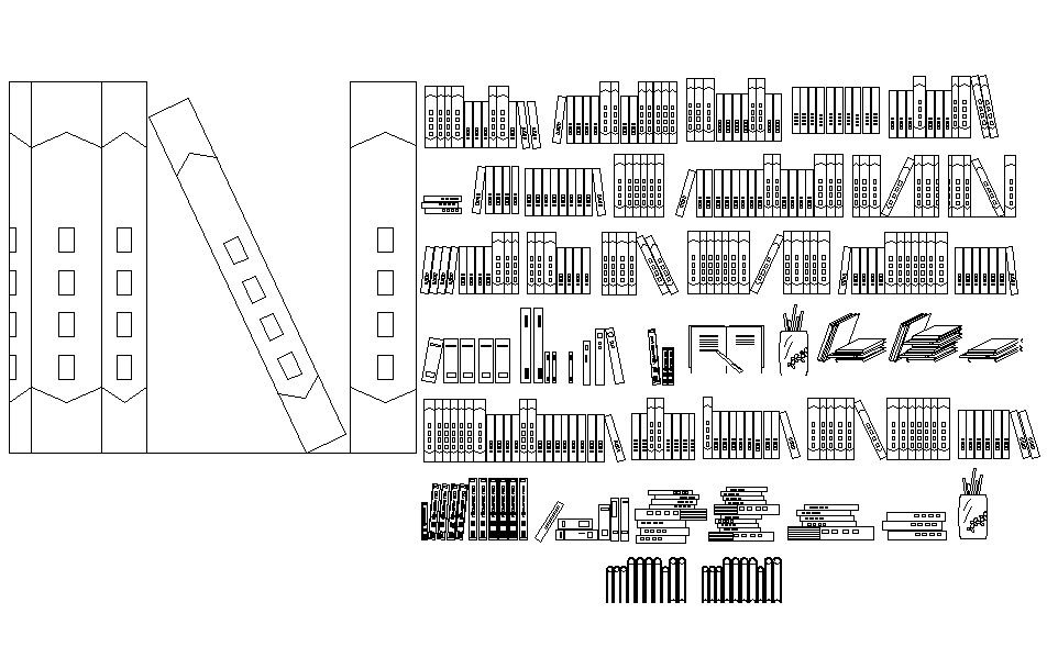 CAD drawing details of book and files blocks file that shows book and files line drawings.