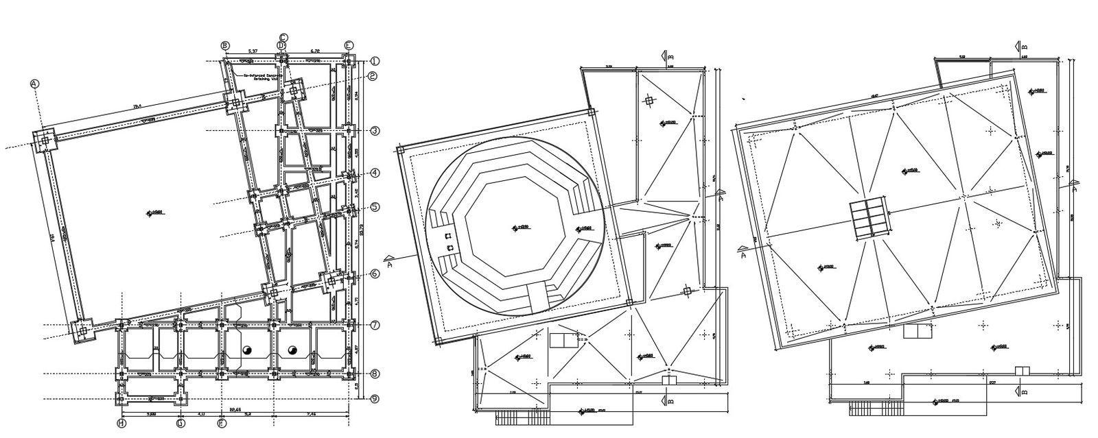 2d drawings of foundation plan and terrace Plan details in dwg file that shows foundation layout plan details along with terrace layout plan details and section line details .
