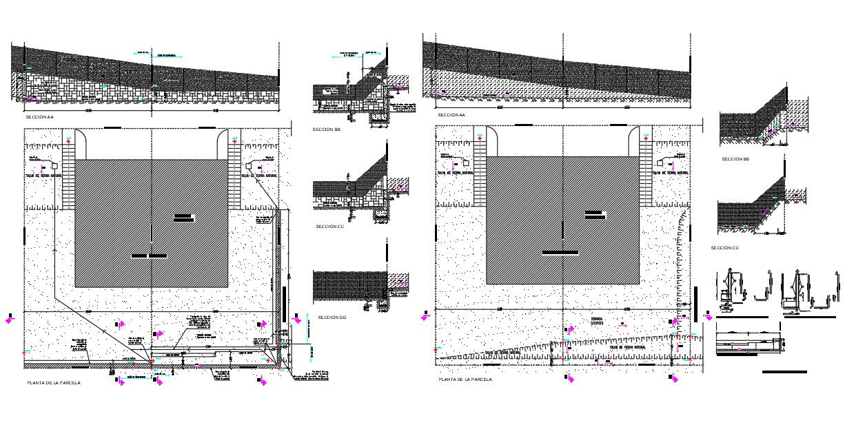 Retaining Wall detail. Horizontal wall containment masonry, Pipe water harvesting base backfill the wall, horizontal wall masonry etc.