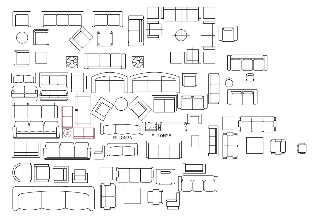 Detailed Sofa Set Block AutoCAD Drawing for Interiors