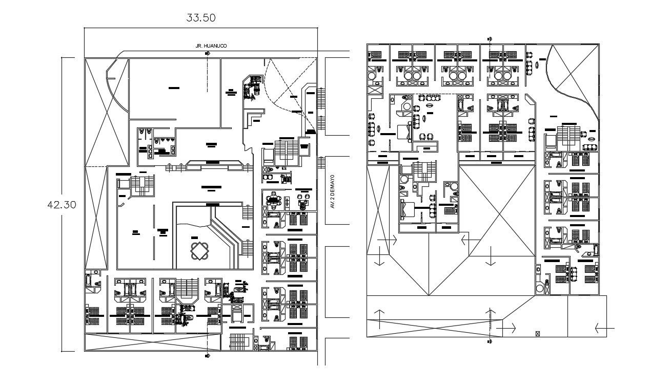 CAD plan of hotel building layout drawings in file that shows work plan drawings details of hotel building along with room details and furniture layout details in building floor level details also included in drawings.