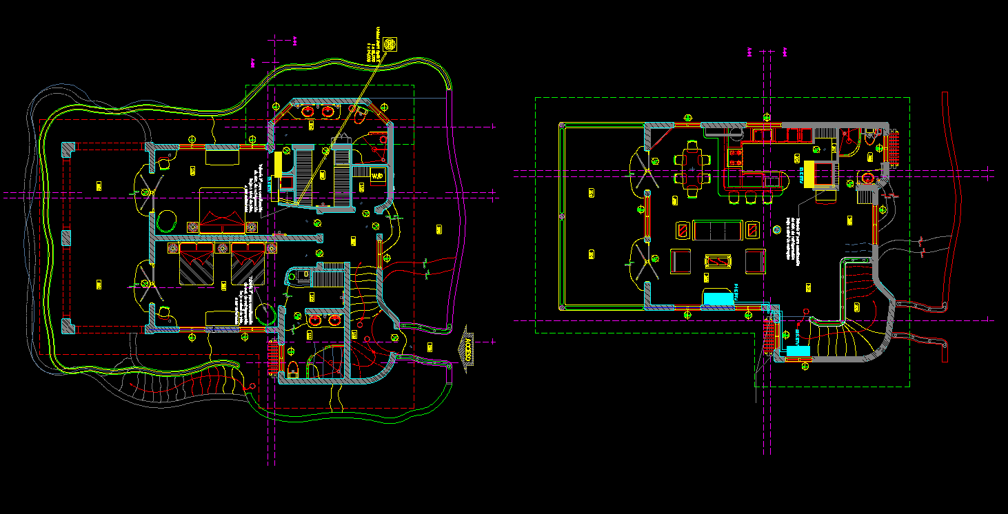 This modern bungalow AutoCAD DWG file provides a complete architectural layout ideal for residential design and construction projects. The plan includes ground and first-floor layouts with precisely scaled room arrangements for living, dining, kitchen, and bedroom areas. Circulation spaces such as staircases and connecting corridors are strategically placed to ensure a smooth functional flow across levels. The design also incorporates entryways, outdoor access points, and service areas for better usability and comfort.