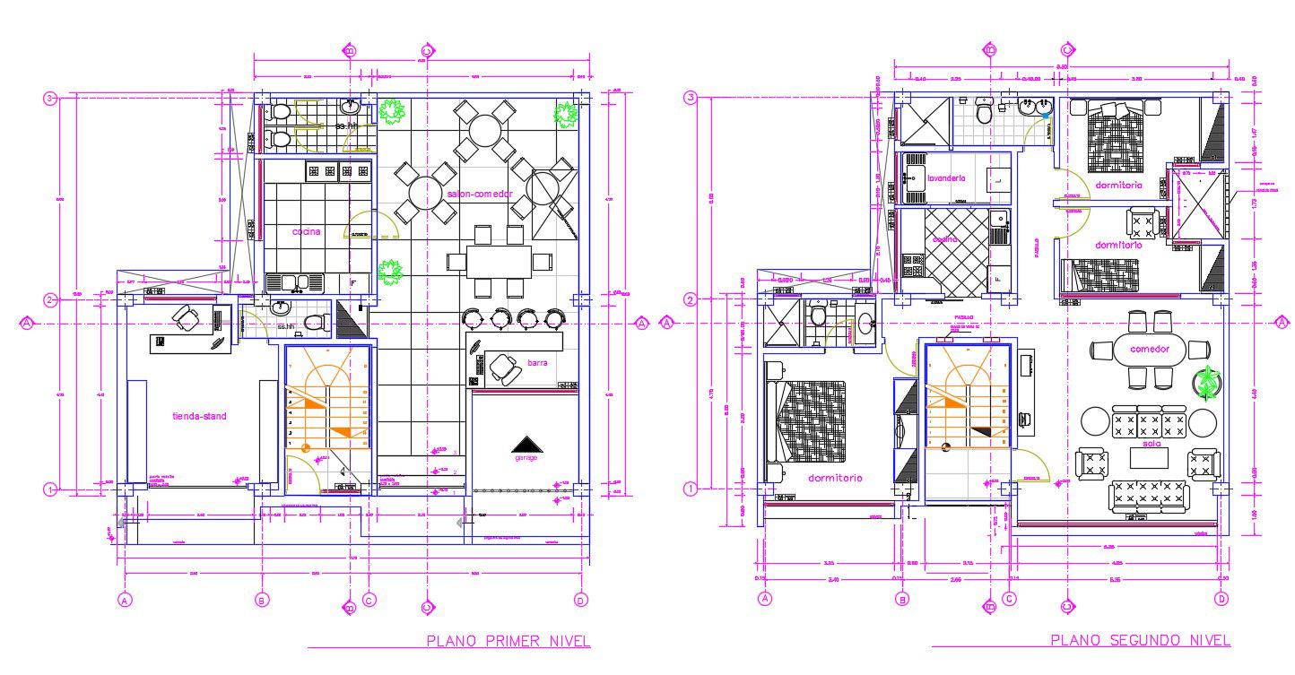 Bedroom floor cad plan includes wash room, bedroom, TV area, dinning hall, kitchen area. The first floor consists of three bedroom, sofa set, dinning hall. Hidden dimensions are also given.