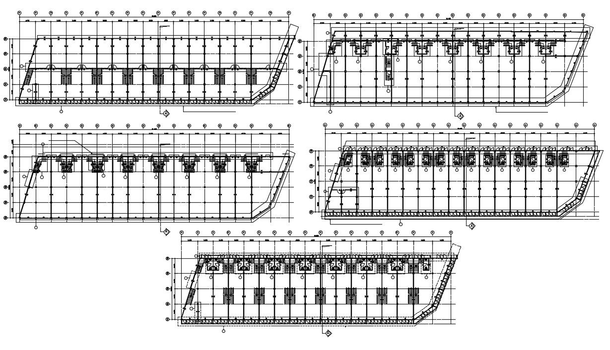 Commerce building units CAD plan that shows work plan drawings details of building along with Floor level details and staircase details. Dimension and hidden line details also included in drawing.