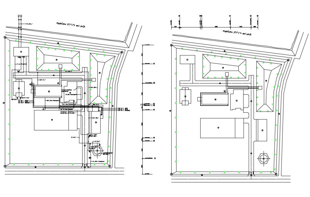 Residence housing area detailing CAD drawing that shows existing apartments details along with road networks details and area dimension detailing.