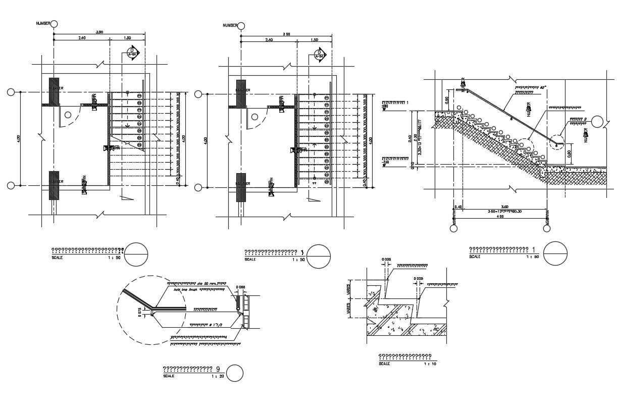 Download staircase section details AutoCAD format, find here top view, side section detail and concrete slab detail. download staircase section plan DWG file and learn staircase civil plan.