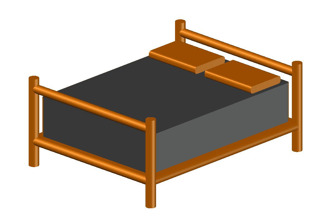 3D double bed details including a back view, right side elevation . This file draw in autocad format.