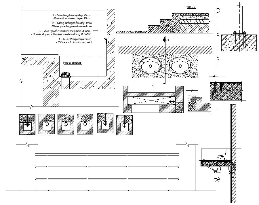 Washbasin design CAD drawing download that shows plan and sectional details of washbasin units along with plumbing blocks details of tap.