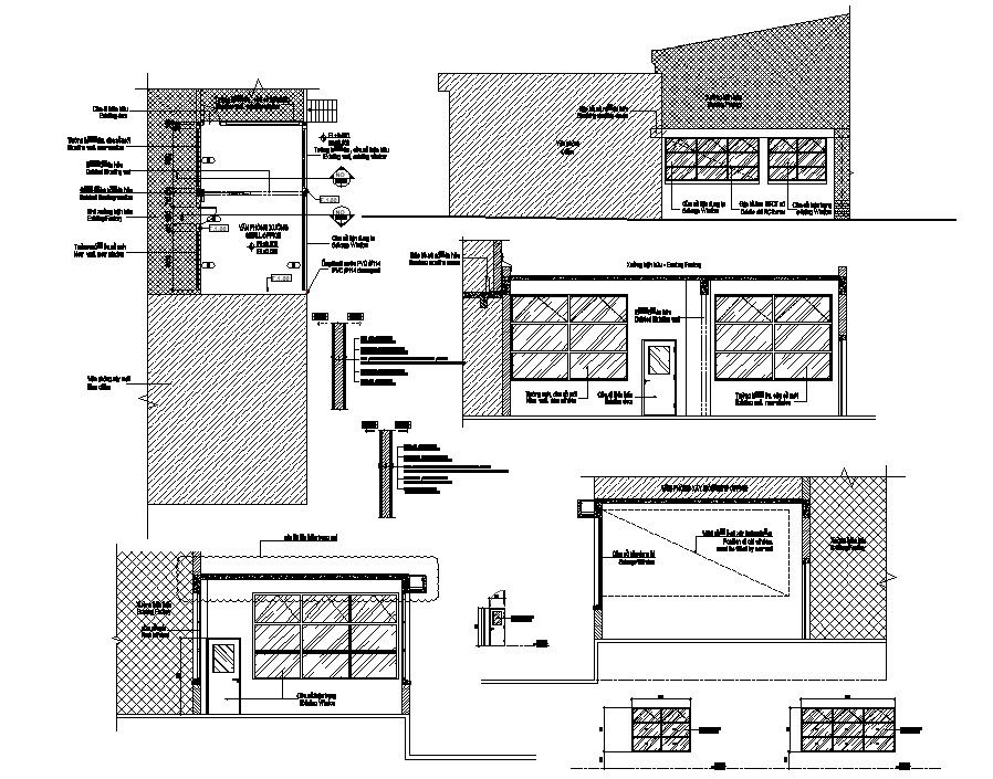 CAD single story building elevation 2d drawing that shows building different sides of elevation along with floor level details and dimension details.