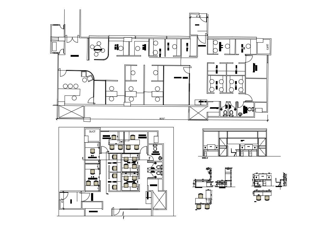Office Layout Plan which includes a waiting area, layout plan, duct, inspirational quotes, work station, door details, cabin table detail, etc.