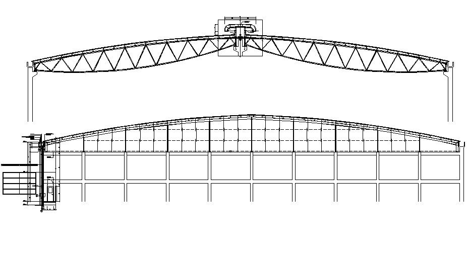 Drawing details of shade structure blocks DWG file that shows industrial shed CAD structural details along with truss and column supporters details.