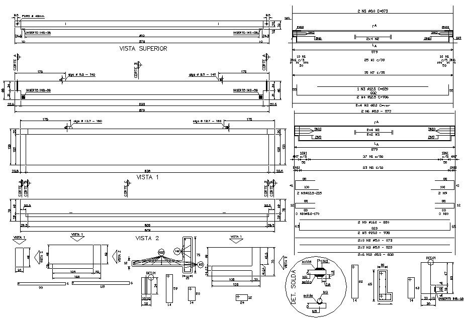 Detail of structural CAD blocks DWG file download which shows reinforced concrete design structure construction details along with bars curtailment details also included in drawing.
