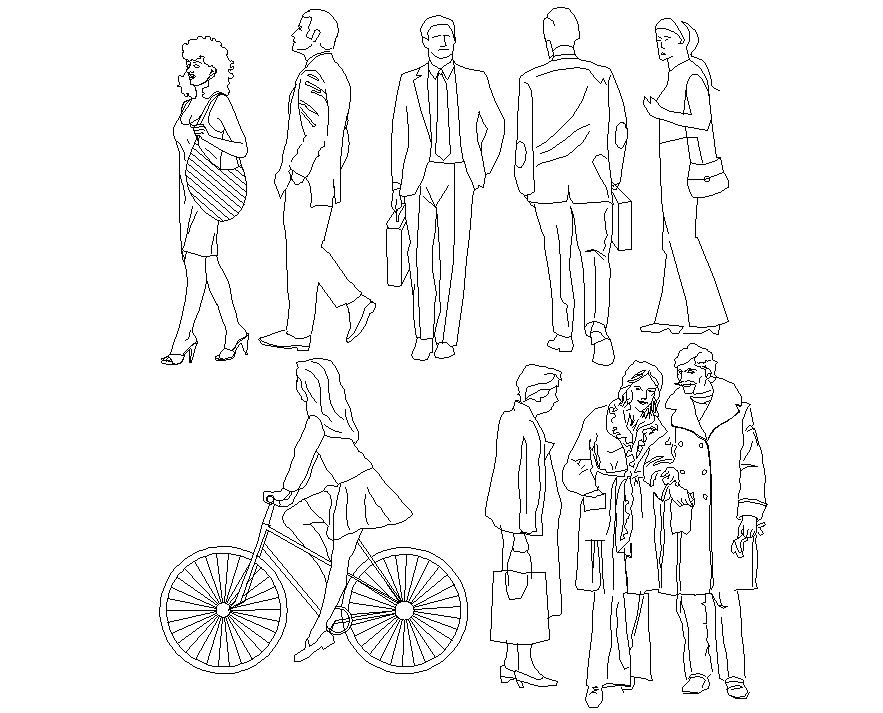 Human figure CAD drawing that shows the line drawing of male female people CAD blocks.