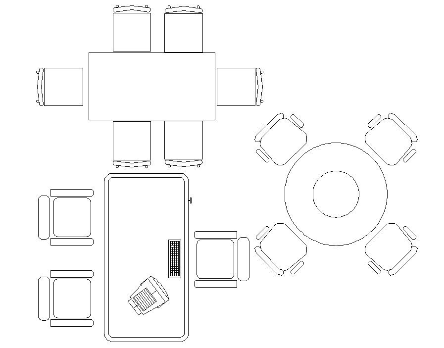 CAD furniture blocks of table and chair which shows top elevation of furniture table and chair blocks.