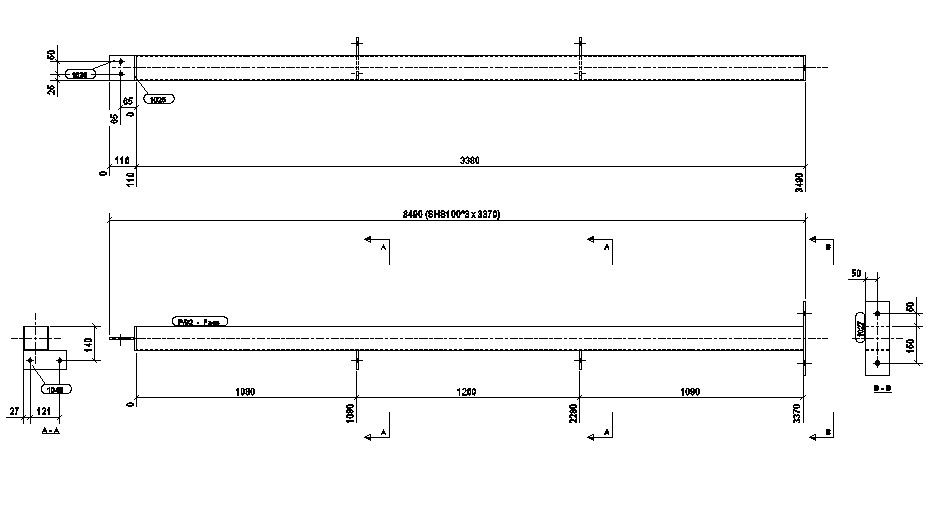 Steel bar CAD drawing 2d view download file that shows the details of steel bars along with bar dimension details and welded bolted joints details.