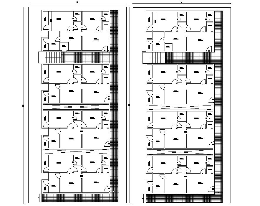 Drawing details of Attached apartment plan DWG file that shows work floor layout plan of housing apartment and each house are of 2 BHK. Room dimension details also included in drawings.