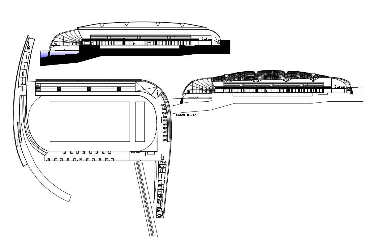 Olympic Swimming Pool Plan DWG File; the architecture layout plan of swimming pool building with elevation design.