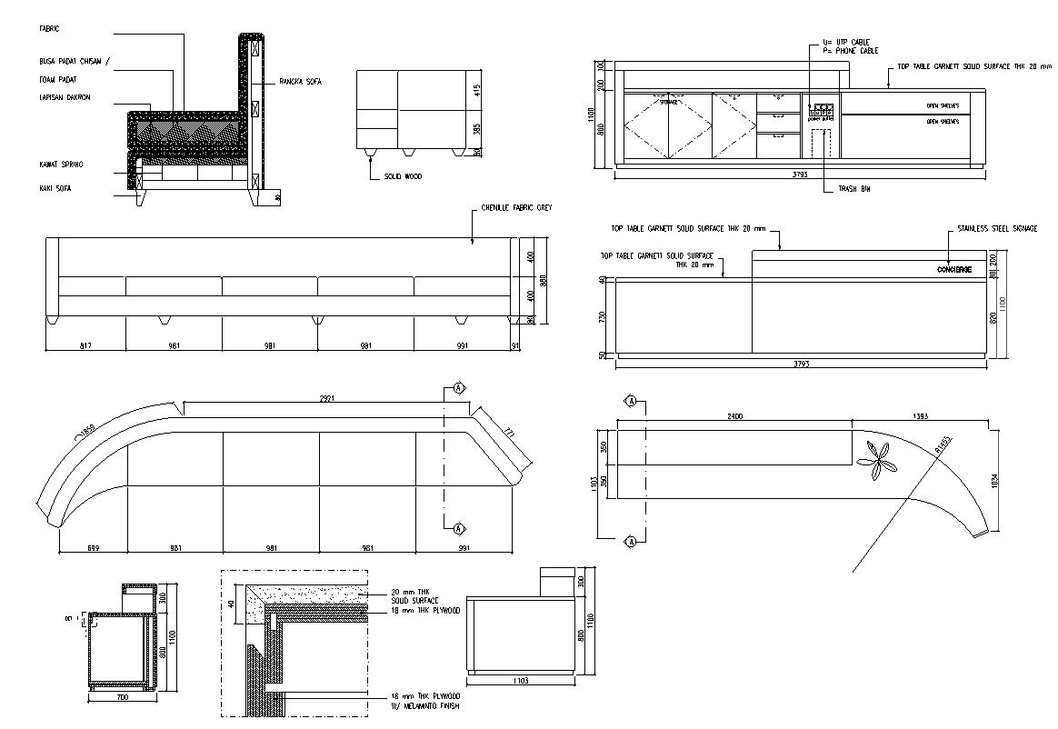 Furniture Detail DWG File includes top view, side view and section plan for understanding how to make it with description and dimension detail.