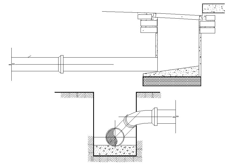 Sewage chamber detail CAD drawing which shows the sewer concrete pipe details. Concrete masonry detail and other structural detail of sewage chamber also included in drawing.