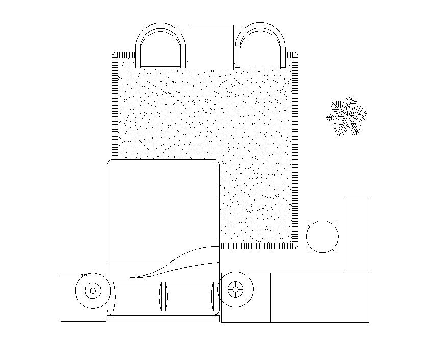 Bedroom Furniture CAD Blocks top view includes a double bed, seating table, and chair, floor carpet and corner lamp table. download Bedroom Furniture and use for master bedroom CAD presentation.