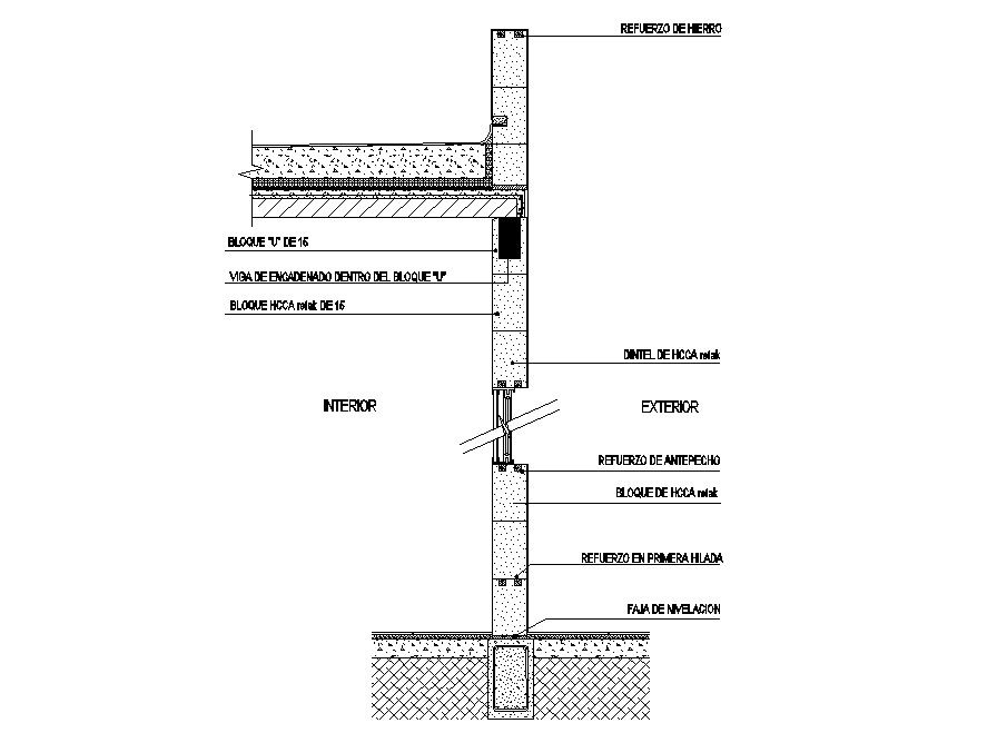 Wall sectional CAD drawing 2d view that shows Exterior wall sectional drawing along with dimension and naming texts details. Slab details and wall foundation details also included in drawing.