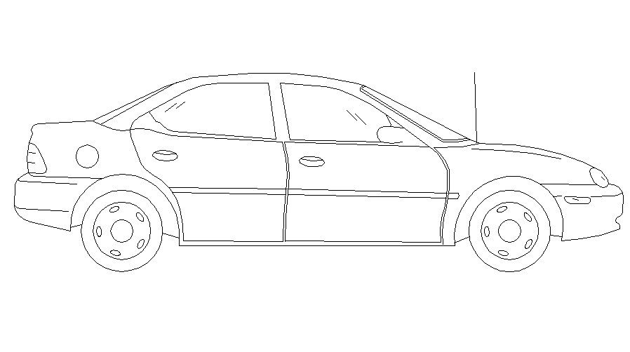 Vehicle elevation CAD blocks drawing that shows side elevation of four seater car vehicle blocks.