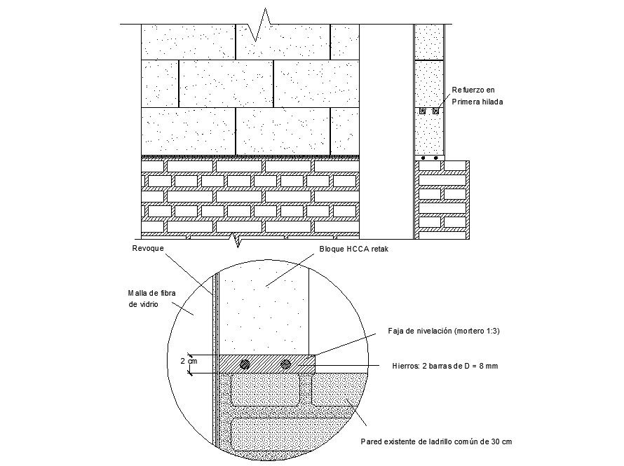 Brick wall construction CAD drawing that shows the construction details of brick wall masonry along with dimension and cement mortar details.