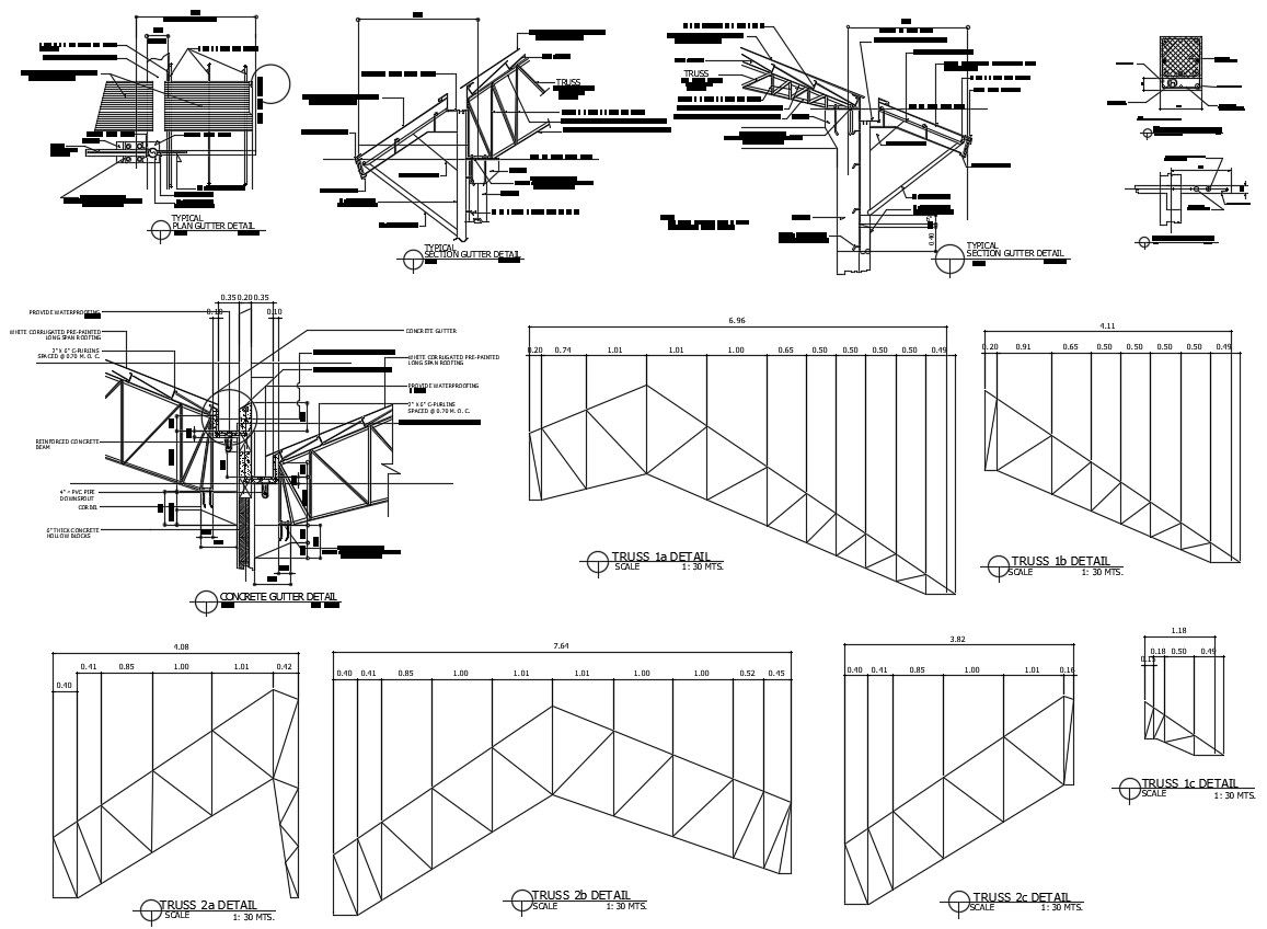 Roof Truss Drawings DWG file includes truss roof section plan with gutter to boundary wall detail also has dimension and description detail for batter understand the drawings.