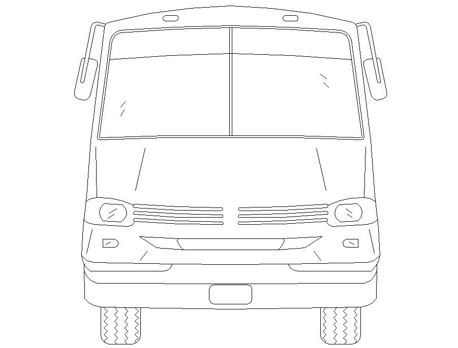 CAD drawing of vehicle bus elevation that shows front elevation of the bus.