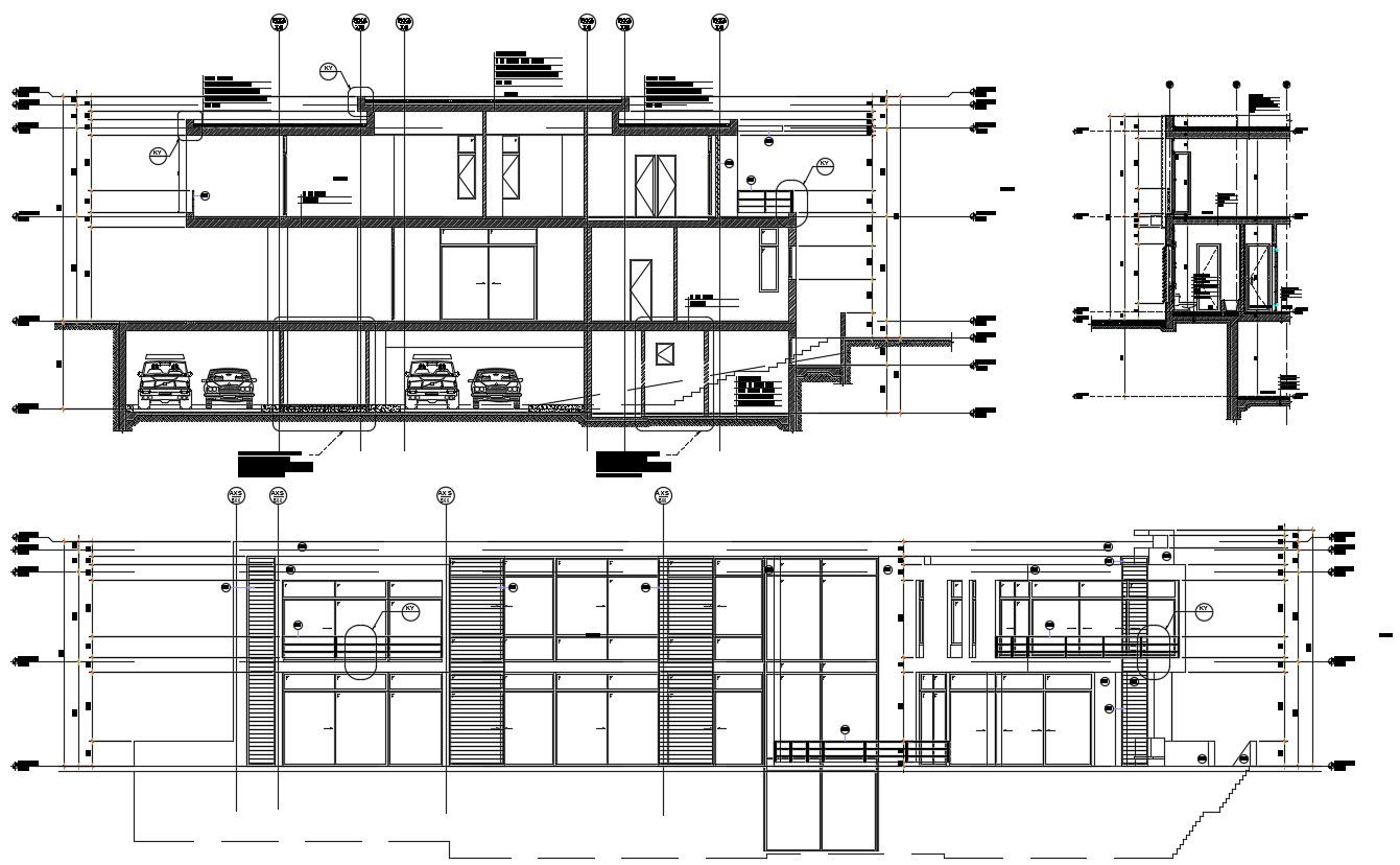Building AutoCAD Drawing includes section plan and elevation design with dimension and description details.