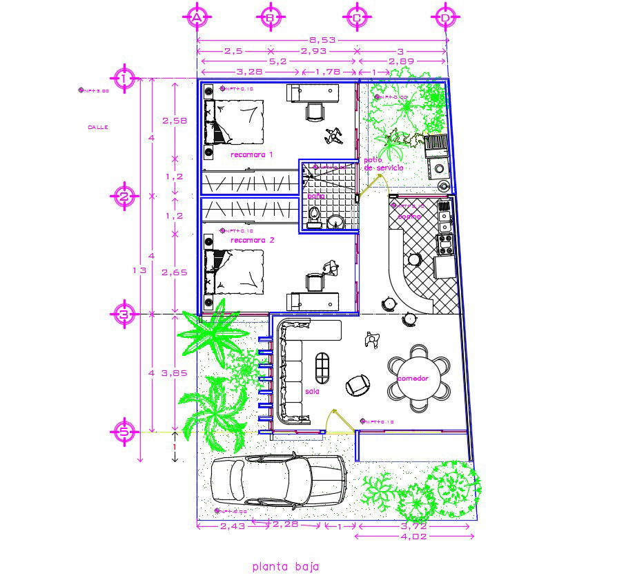The drawing of the bungalow includes two bedroom along with the bathroom, kitchen, drawing room, balcony, parking area with landscaping.