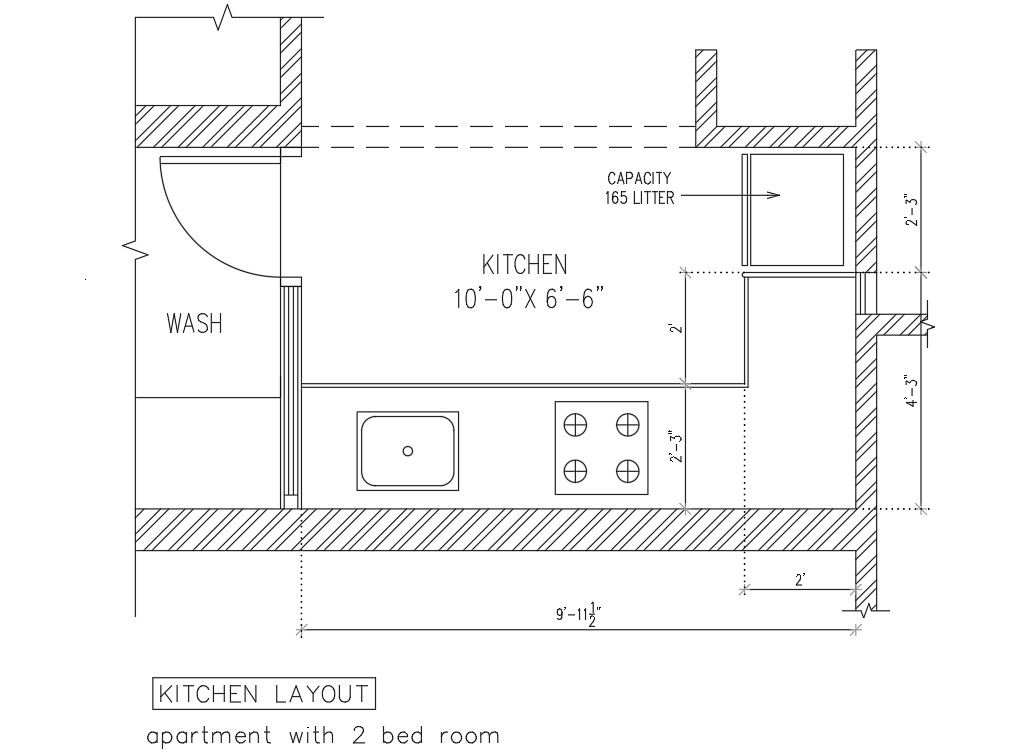 This kitchen design of wash area, kitchen platform detail, and all dimension design.