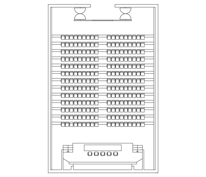 Auditorium Layout Plan AutoCAD file; the auditorium layout plan includes entranceway, seating arrangement, and stage. download Auditorium Layout Plan DWG file use it for CAD presentation.