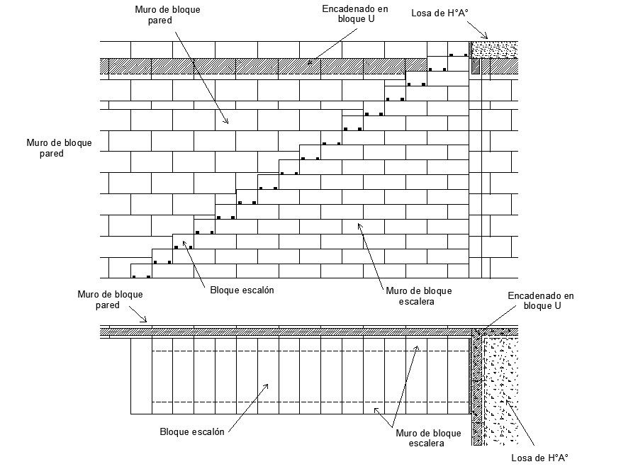 CAD drawing details of stairway construction DWG file that shows brick wall details along with joined stairway plan and elevation drawing details.