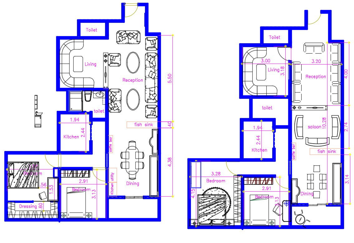 Two storey house plan which includes big living hall along with the dinning area, bedroom , kitchen, dressing room and balcony.